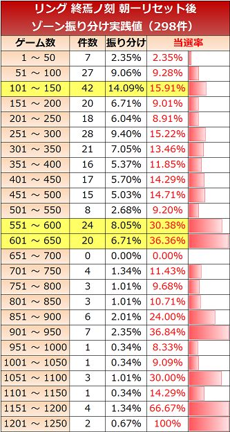 リング パチスロ ゾーン振り分け解析値