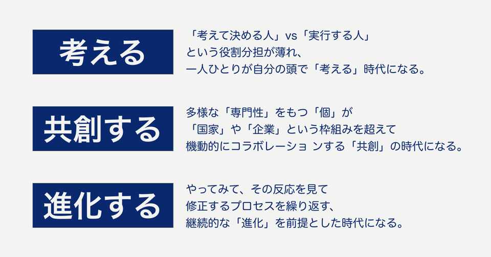 予測不可能な世界だから 考える 時代になる 共創 の時代になる 進化 が前提の時代になる 柏木誠 プロジェクトデザイナー Note