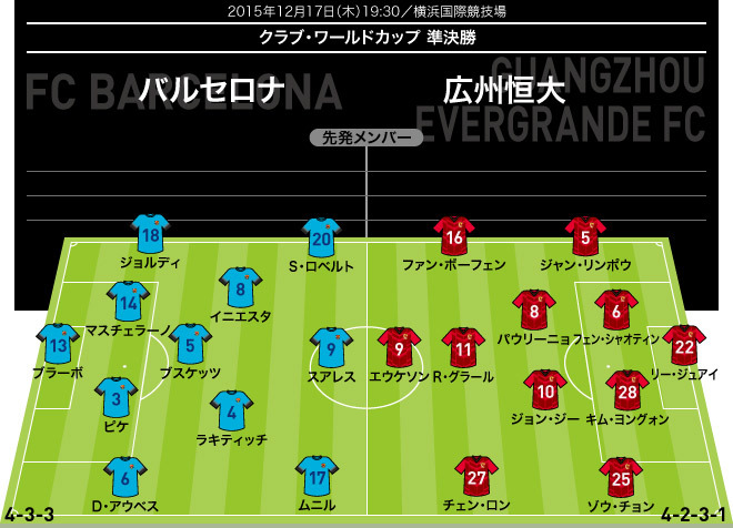 クラブw杯速報 バルセロナ 広州恒大 スタメン発表 メッシは出場せず サッカーダイジェストweb