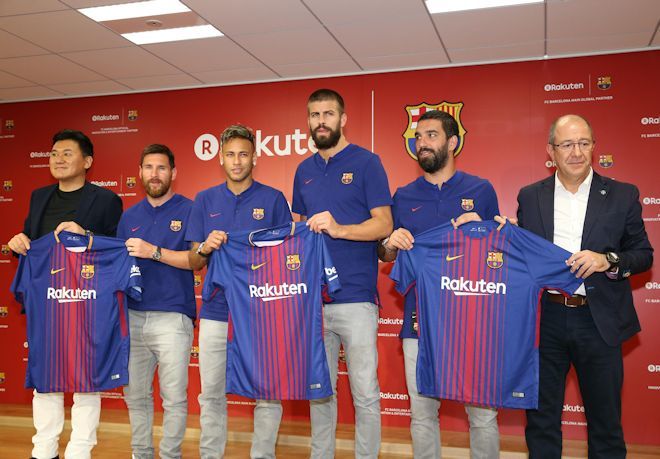 メッシ ピケ アルダ ネイマールが登場 楽天とfcバルセロナとのパートナーシップ記者会見 Victory
