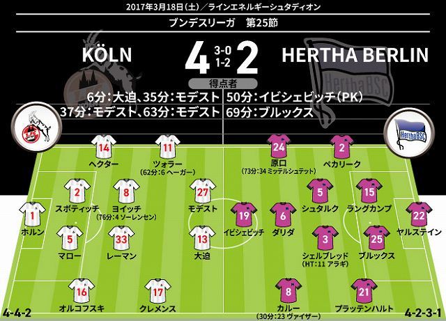 1得点 1アシストのケルン大迫 鮮烈な印象を残して原口との 日本人対決 に勝利 サッカーダイジェストweb