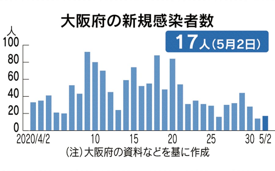 新型コロナ 大阪府の2日の感染者17人 死者3人 日本経済新聞