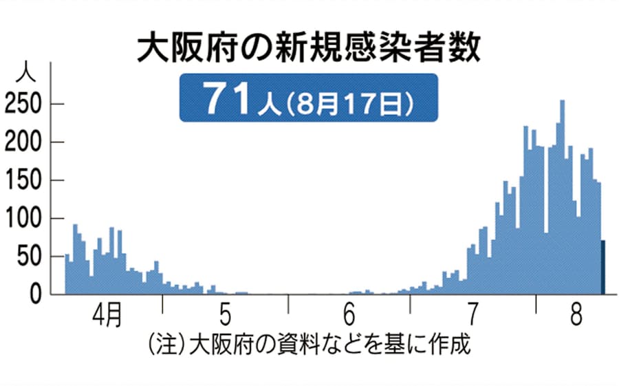 新型コロナ 大阪府 17日の新規感染71人 14日ぶり100人未満 日本経済新聞